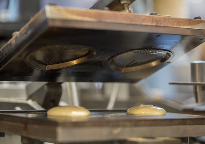 北海道産の100%の手亡(白いんげん豆)を使用し、三島の水と砂糖だけで作った餡に、国内産卵を秘伝の割合で混ぜて焼くというシンプルな製法にこだわりました。